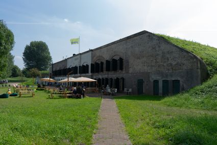 Dit 19e-eeuws bolwerk is een markant baken in het linielandschap. Het prachtige torenfort is militair erfgoed en onderdeel van de Nieuwe Hollandse Waterlinie. Mooi gelegen aan de Linge valt het fort direct op door de glazen koepel over de lichtschacht: een kunstwerk dat regen buiten houdt, maar vleermuizen wél hun weg naar hun winterverblijf laat vinden. De koepel bestaat volledig uit glazen leien die ontwikkeld zijn in de glasblazerij van het Nationaal Glasmuseum. Maar liefst 600 kinderen uit de buurt mochten een eigen tegel